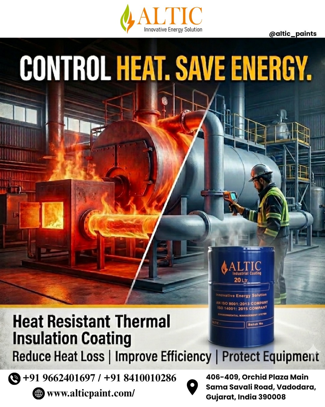 Heat Resistant Thermal Insulation Coating A high-performance coating designed to withstand extreme temperatures while reducing heat transfer. It forms an insulating barrier that protects surfaces, improves energy efficiency, and enhances equipment life in high-heat environments. Key Benefits: ✔ Reduces heat loss & surface temperature ✔ Withstands high temperatures (various grades available) ✔ Improves energy efficiency & cost savings ✔ Protects metal from thermal stress & damage ✔ Strong adhesion & long-lasting performance ✔ Ideal for boilers, furnaces, pipelines & industrial equipment 🌡️ Control Heat. Save Energy. Protect Equipment. #ThermalInsulationCoating #HeatResistantCoating #EnergySaving #IndustrialCoatings #ThermalProtection #ALTICPaints
